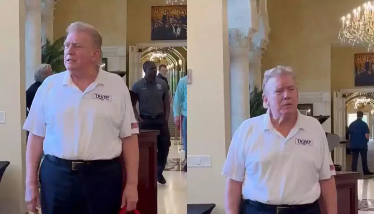 The video, posted on X (formerly Twitter) by supporter Michael Solakiewicz, captured Trump walking into the club wearing a white polo shirt, black pants, and carrying his signature red MAGA cap. While addressing a cheering crowd, Trump casually joked, “Is everybody a Republican?” But what truly caught everyone’s attention was his seemingly different hairstyle.
