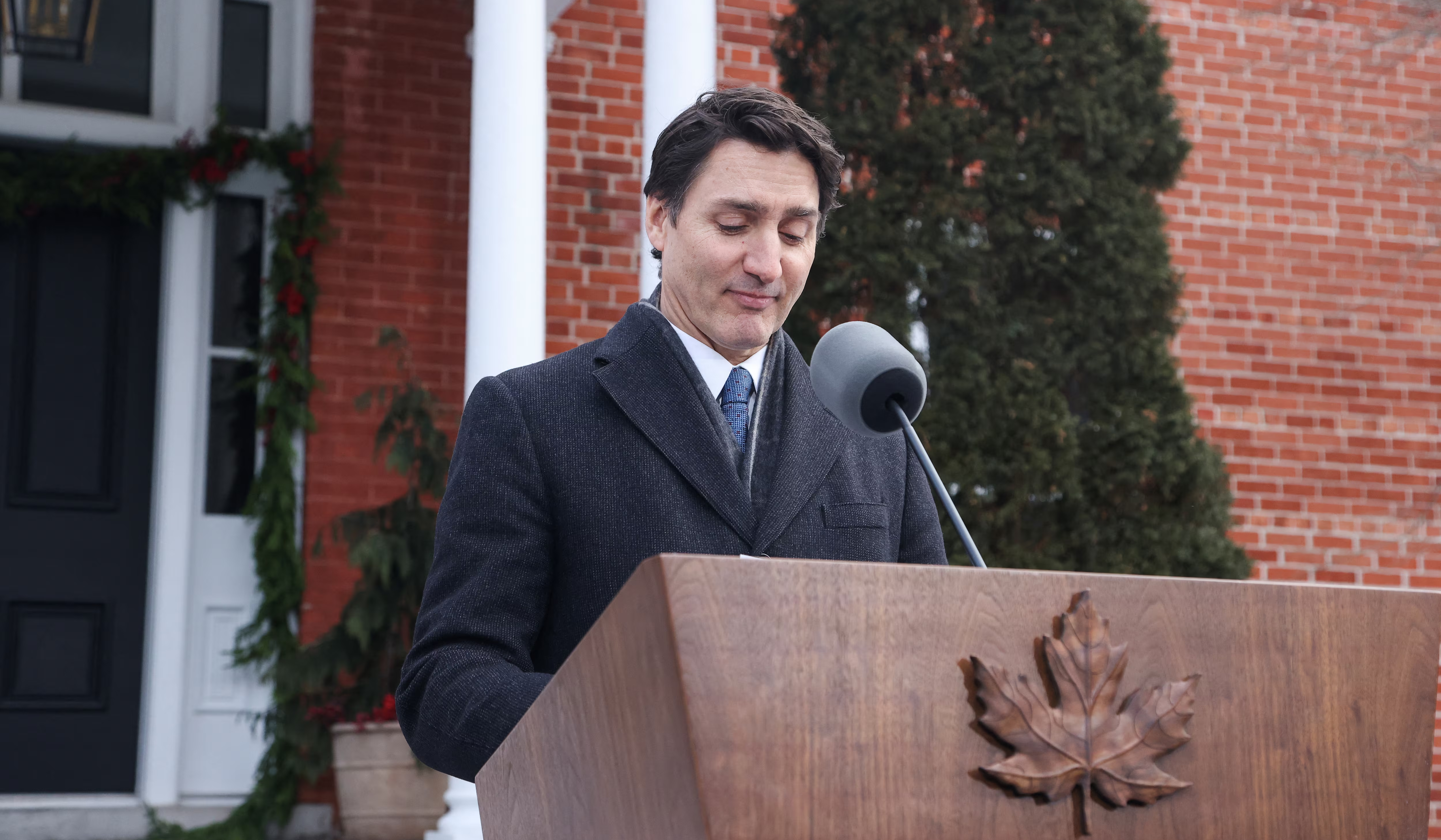 Justin Trudeau resignation speech at Rideau Cottage in Ottawa, Canada on Jan. 6. (Image Credit: Dave Chan / AFP via Getty Images)